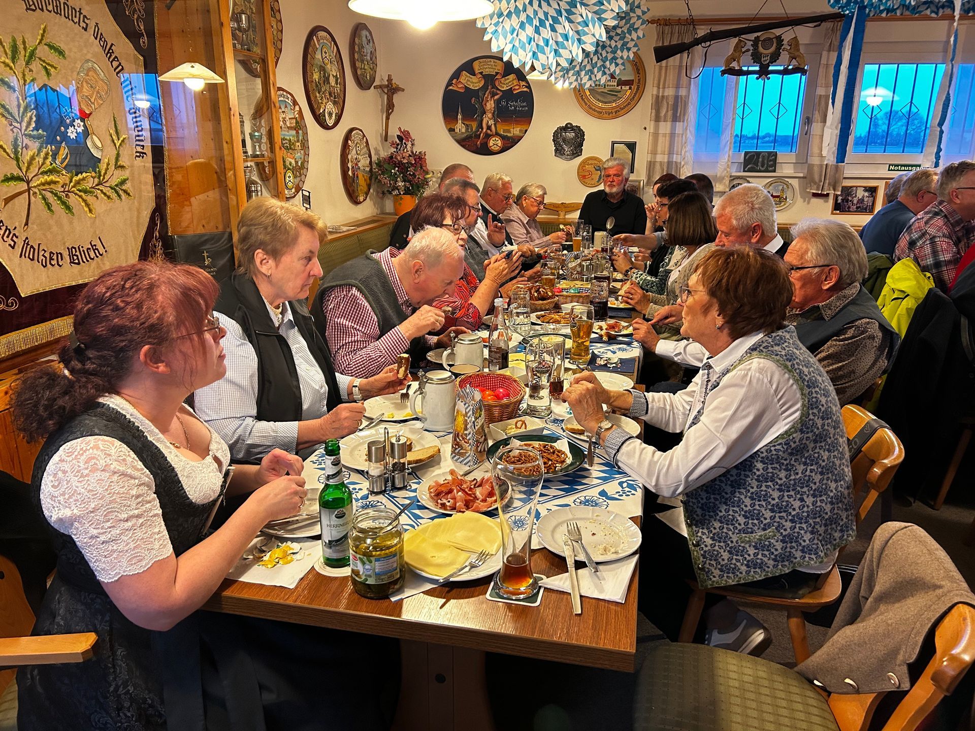 Bei unserem diesjährigen Starkbierfest konnten wir neben zahlreichen Vereinsmitgliedern auch Schützenkolleginnen und -kollegen aus unserem Patenverein des SV Edelweiss Brunnenreuth begrüßen. Danke für Euere Teilnahme. In einer geselligen Runde wurde reichlich gegessen, getrunken, geredet und gelacht. Bei Geräuchertem, Käse, Brezn, Brot, Obazda und vielem mehr konnte jeder nach Belieben zugreifen - Essn so vui wie neipasst. Ein gelungener Abend, der nach dem Essen noch lange nicht zu Ende war.